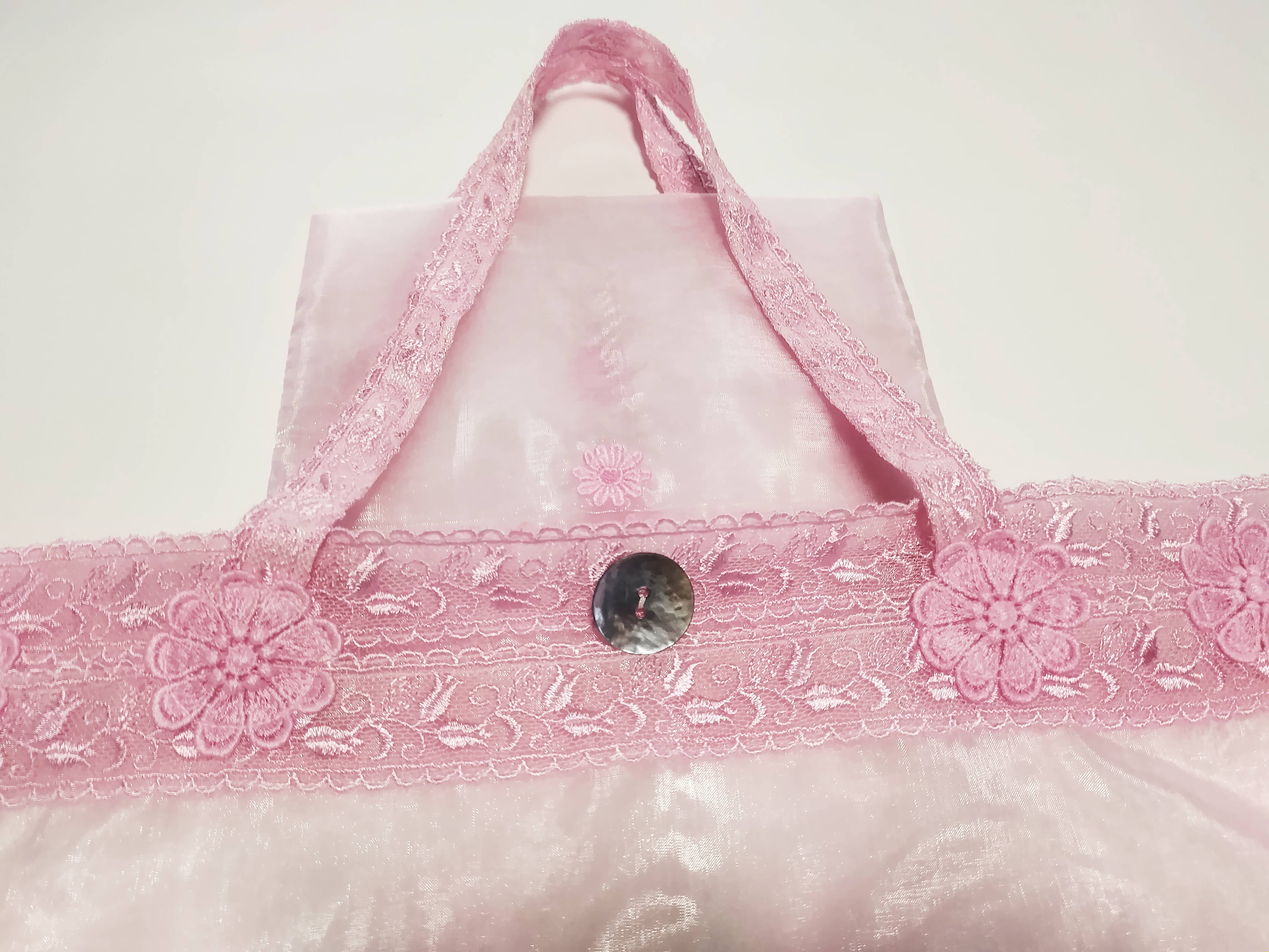 オーガンジーとレースのサイドバック ♪畳んでエコバッグ♪(カラーバリエーション4色)