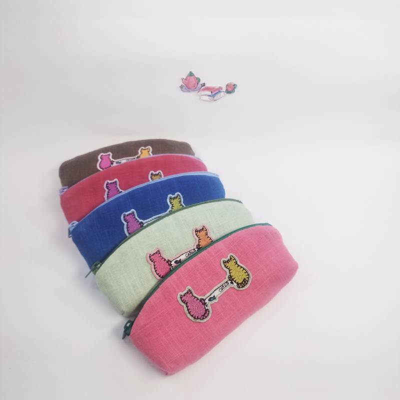 ♪魚釣り猫♪の刺繡ワッペン付 メガネケース 5色